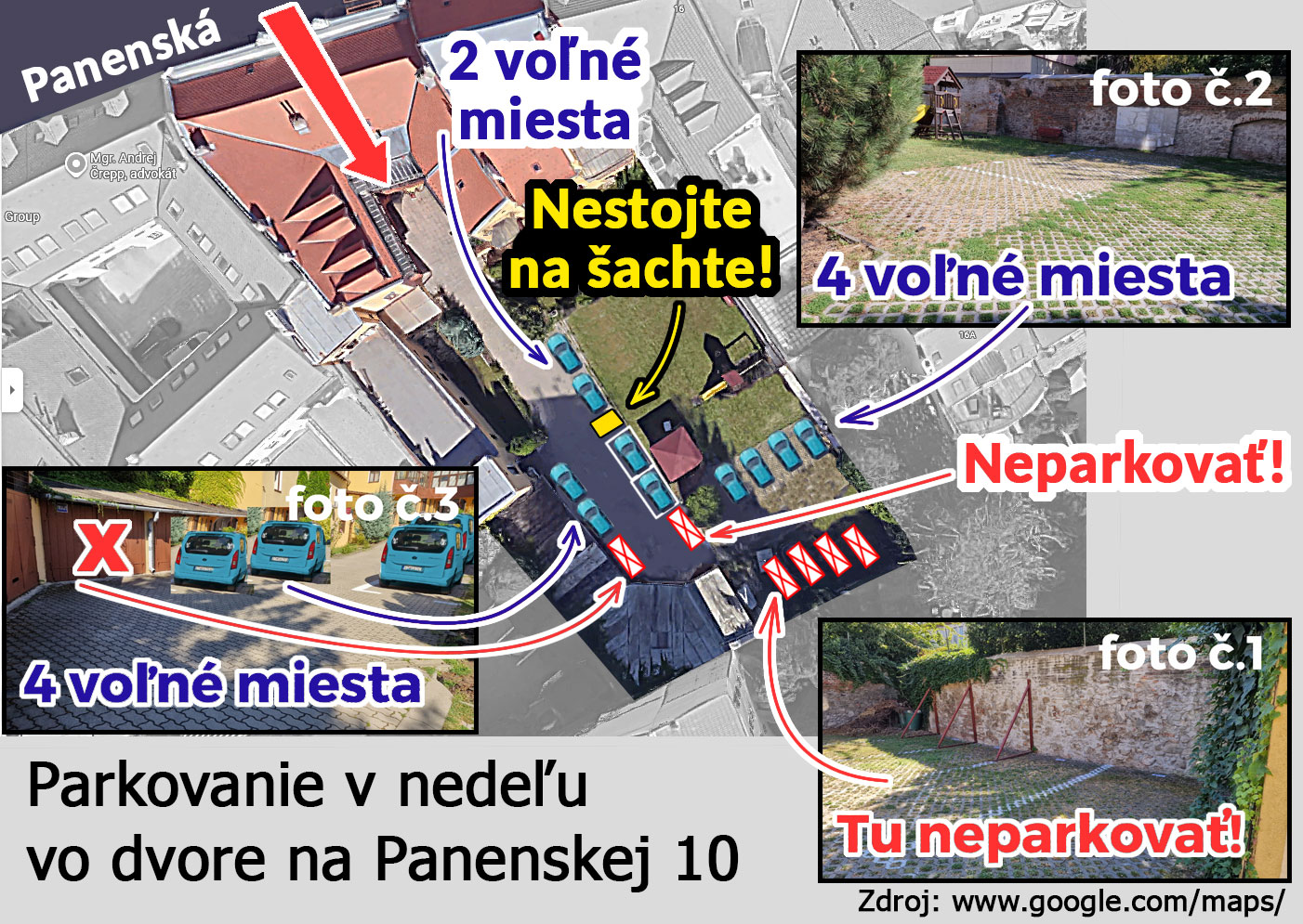 Pri parkovaní vo dvore na Panenskej 10, prosíme, rešpektujte tieto pravidlá: